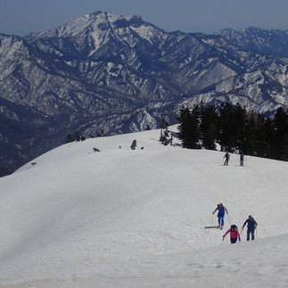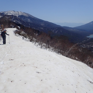ギリギリの残雪を繋いで標高を上げます。尾根上に出ればまだまだ十分な積雪量。
