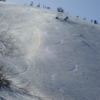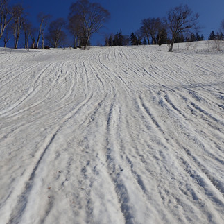 柔らかめのザラメ雪はとても滑りやすい。